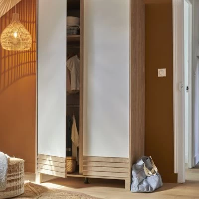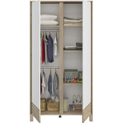 – Un côté penderie avec 1 tablette et 2 tringles.