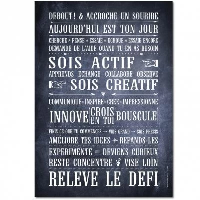 La carte Relève le Défi de la marque Mes Mots Déco est à accrocher dans la maison. Avec son originalité, cette carte fera sensation et apportera une touche originale et décorative à votre pièce.