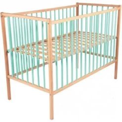 Lit à Barreaux Rémi En Hêtre Massif Laqué Vert Mint (60 X 120 Cm)