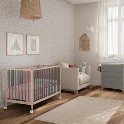 Lit Bébé à Barreaux Mountain Gris Nuit Et Bois (60 X 120 Cm)