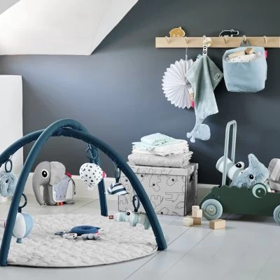 – Plusieurs activités : miroir, hochet, papier bruissant, textures variées, anneau de dentition…