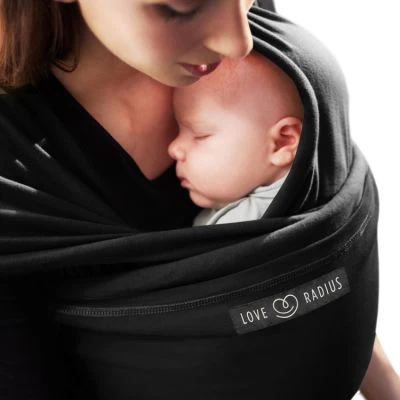Une écharpe qui permet de faire le noeud avant d’installer le bébé et de l’enlever de l’écharpe sans défaire le noeud (positions ventre à ventre, hanche, assis de profil).