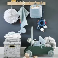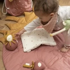 Doudou Plat Avec Anneau De Dentition Vert De Gris (35 X 35 Cm)