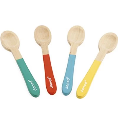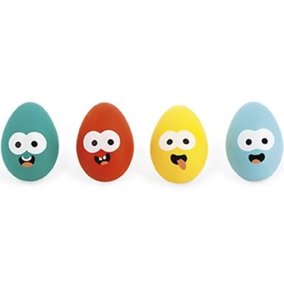 – 4 cuillères et 4 oeufs colorés en bois.