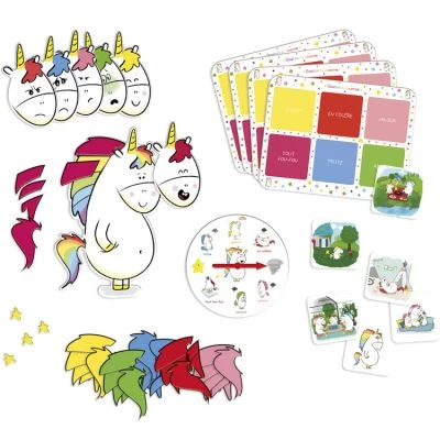 – Ce jeu comprend 52 cartes, 4 plateaux de jeu individuels, 1 roue avec une aiguille, 1 grand Gaston magnétique, 46 pièces magnétiques, 1 livret de 12 pages avec 6 exercices de sophrologie et 1 livret avec les règles du jeu.