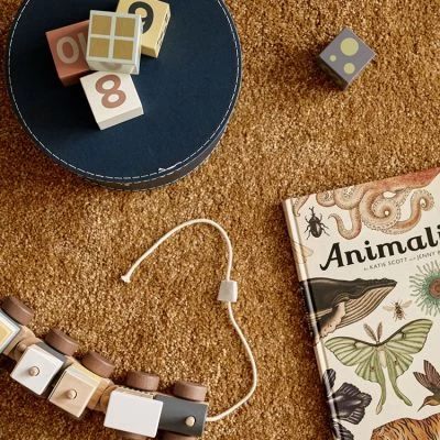 – Blocs en bois de couleurs et formes diffĂ©rentes.