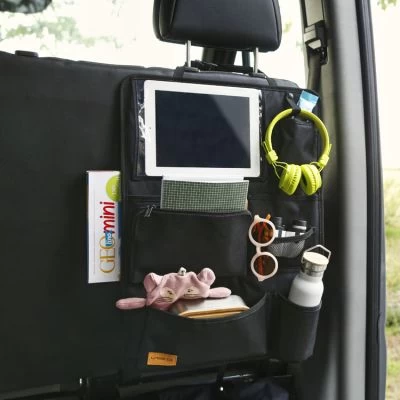 – Fixation simple au dos du siège de voiture.