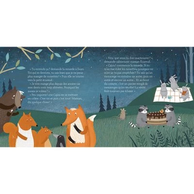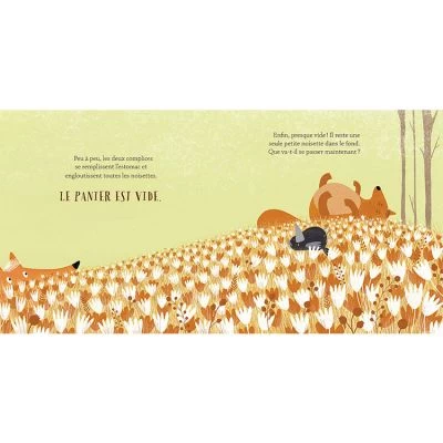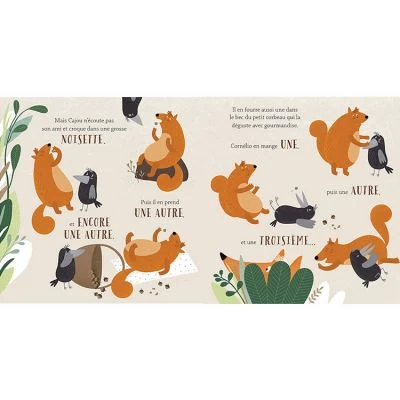 Lorsque Maman écureuil quitte la maison en laissant un panier de noisettes sous le porche, Petit écureuil et Petit corbeau ne résistent pas à la tentation de manger une, puis deux, puis trois noisettes… Puis tout le panier ! Un album joliment illustré qui permet d’aborder avec les enfants les notions d’honnêteté, de politesse et le fait que les mensonges finissent toujours par se savoir.