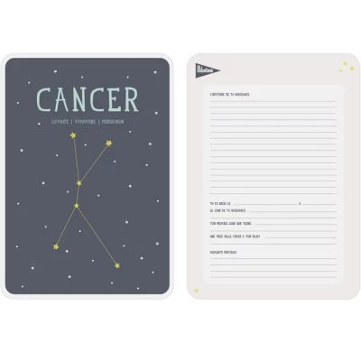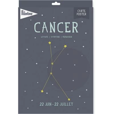 L’affiche décorative signe astrologique Cancer de la marque Milestone trouvera toute sa place dans la décoration de la pièce. Cette affiche est personnalisable au dos afin qu’elle devienne un cadeau très personnel et sentimental.