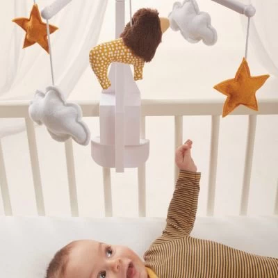 – Attention, pour éviter tout risque d’enchevêtrement, retirer ce jouet lorsque l’enfant commence à se relever sur les mains et les genoux.