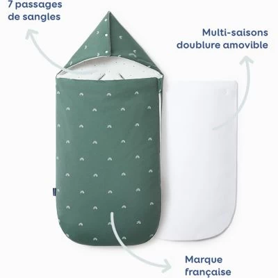 – Utilisable toute l’année, quelle que soit la température, grâce à la doublure amovible.