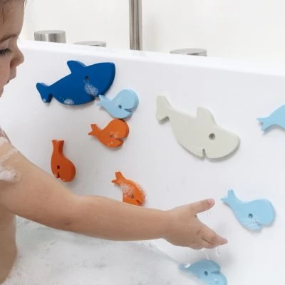 – Flottantes et fixables sur la paroi de la baignoire ou de la douche simplement en les mouillant.